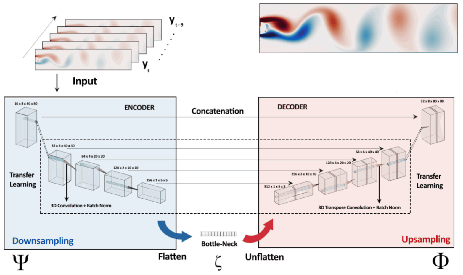 Abstract : Reduced order modeling (ROM) has been widely used to create lower order, computationally inexpensive representations of higher-order dynamical systems. Using these representations, ROMs can efficiently model flow fields while using significantly lesser parameters. Conventional ROMs accomplish this by linearly projecting higher-order manifolds to lower-dimensional space using dimensionality reduction techniques such as proper orthogonal decomposition (POD). In this work, we develop a novel deep learning framework DL-ROM (deep learning—reduced order modeling) to create a neural network capable of non-linear projections to reduced order states. We then use the learned reduced state to efficiently predict future time steps of the simulation using 3D Autoencoder and 3D U-Net-based architectures. Our model DL-ROM can create highly accurate reconstructions from the learned ROM and is thus able to efficiently predict future time steps by temporally traversing in the learned reduced state. All of this is achieved without ground truth supervision or needing to iteratively solve the expensive Navier–Stokes (NS) equations thereby resulting in massive computational savings. To test the effectiveness and performance of our approach, we evaluate our implementation on five different computational fluid dynamics (CFD) datasets using reconstruction performance and computational runtime metrics. DL-ROM can reduce the computational run times of iterative solvers by nearly two orders of magnitude while maintaining an acceptable error threshold.